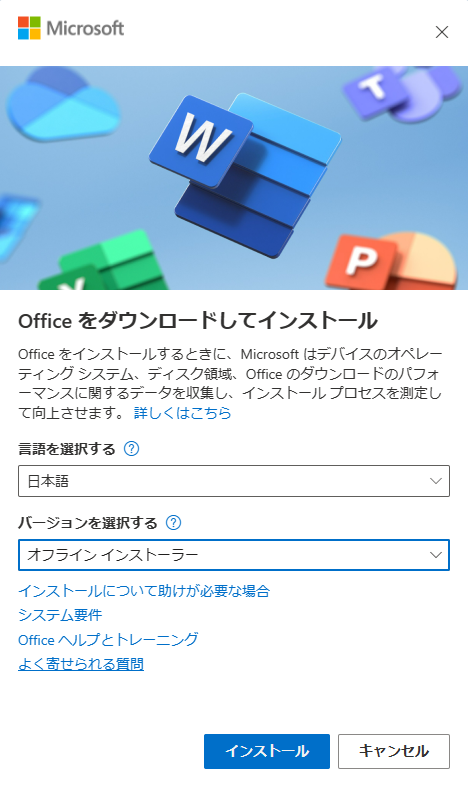 オフラインインストーラーでインストールする