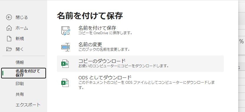 作成したファイルは自動的にOneDriveへ保存されますが、作成したものをローカルに保存する事も可能です。